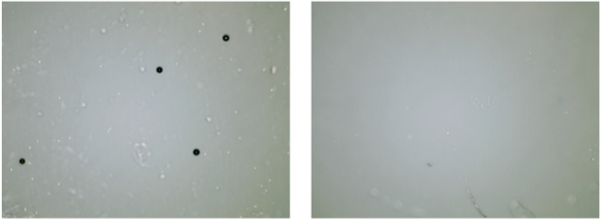 顯微鏡觀察細(xì)胞幾乎全部破碎(左圖處理前,右圖處理后)