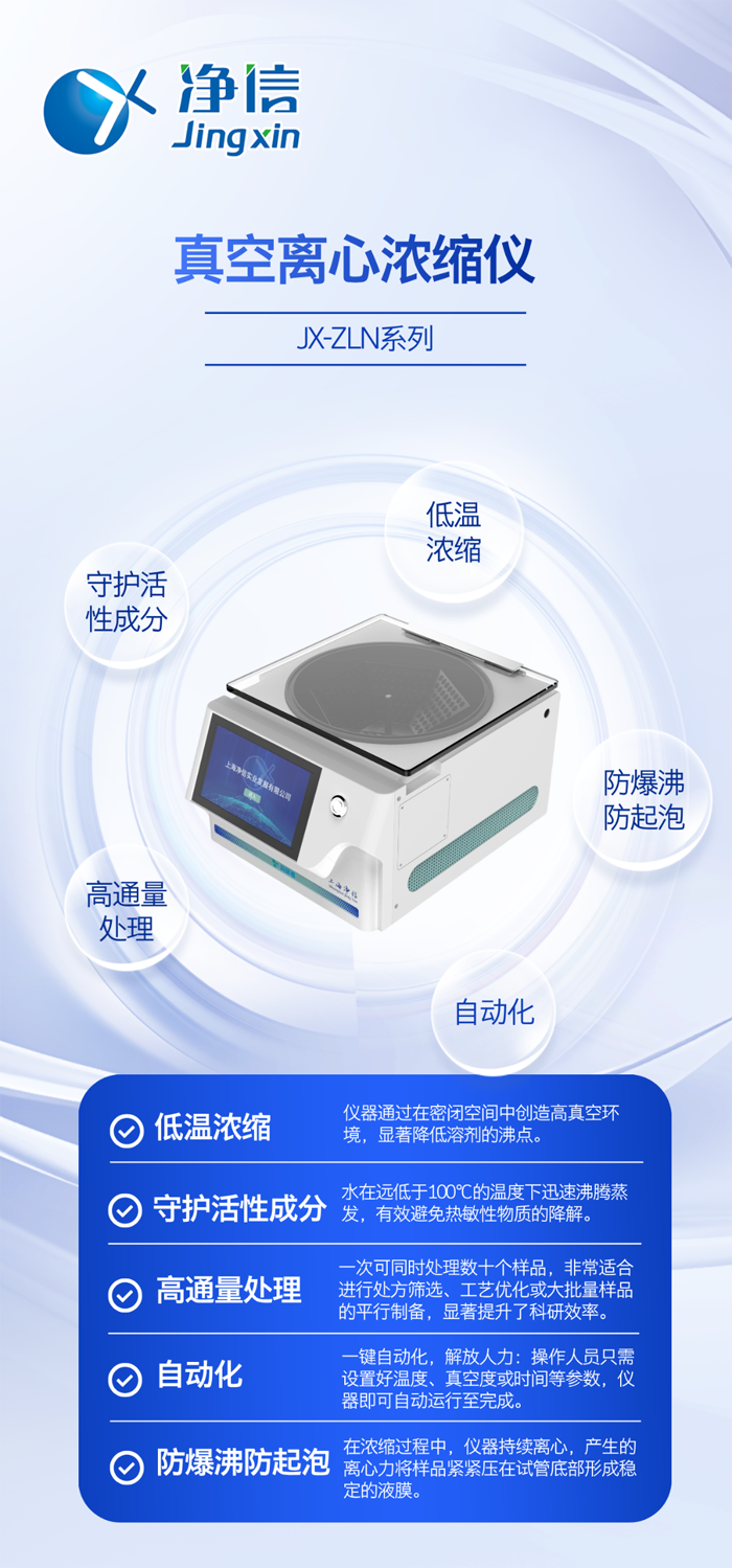 真空離心濃縮技術(shù)的出現(xiàn),提供了解決方案。凈信真空離心濃縮儀集真空、離心、加熱三大技術(shù)于一體,其優(yōu)勢正是針對傳統(tǒng)方法的痛點(diǎn)而來。