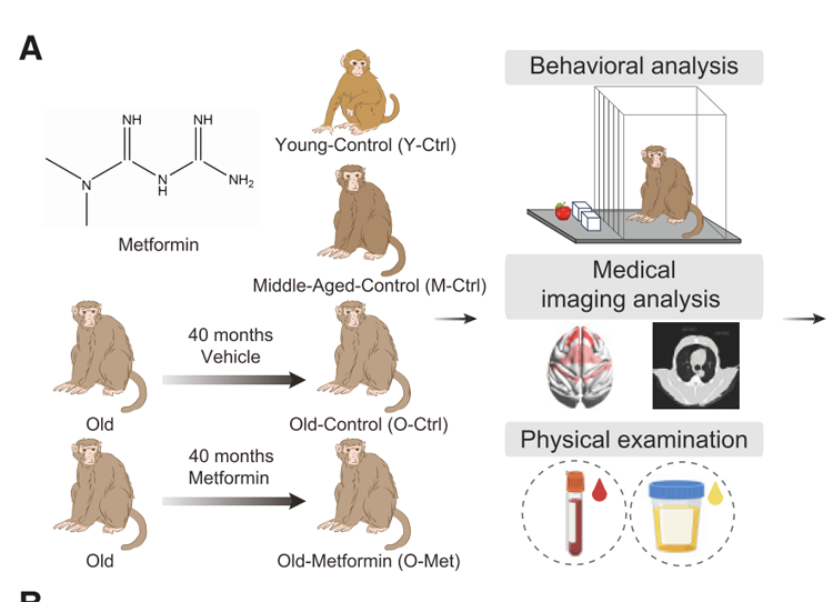 經(jīng)過多年的努力,研究團(tuán)隊(duì)取得了重要發(fā)現(xiàn)。他們證實(shí),長期服用二甲雙胍可減緩靈長類動(dòng)物的衰老進(jìn)程,改善認(rèn)知功能,并顯著降低多種衰老相關(guān)指標(biāo)。這一成果為二甲雙胍在人類抗衰老治療中的應(yīng)用提供了重要的理論依據(jù)。值得一提的是,該研究還構(gòu)建了一個(gè)基于多維度生物標(biāo)志物的靈長類衰老時(shí)鐘度量體系,為未來衰老干預(yù)措施的效果評(píng)估提供了新的標(biāo)準(zhǔn)。