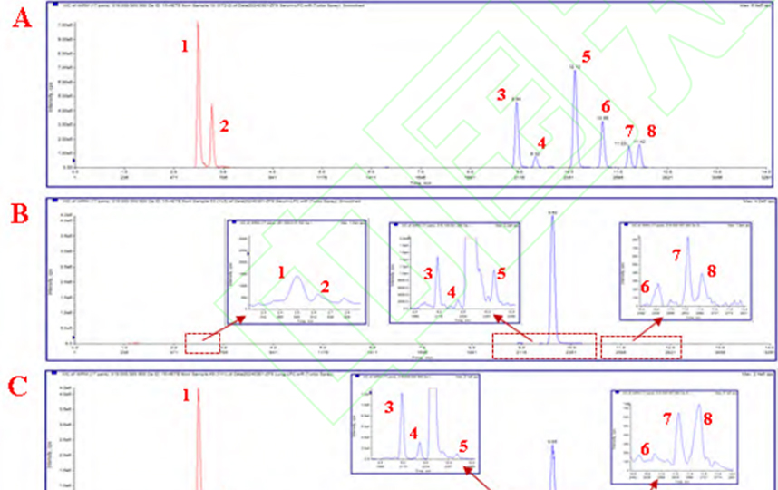 在此基礎(chǔ)上通過超高通量組織研磨儀和真空離心濃縮儀進(jìn)行優(yōu)化實(shí)驗(yàn)步驟,超高通量組織研磨儀使樣品均質(zhì)化更徹底,方便后續(xù)萃取;真空離心濃縮儀補(bǔ)充了溶液蒸發(fā)過程中的爆沸,減去了添加飽和NaCl的步驟,減少后續(xù)離子干擾,使本實(shí)驗(yàn)方法更快速安全,靈敏準(zhǔn)確。