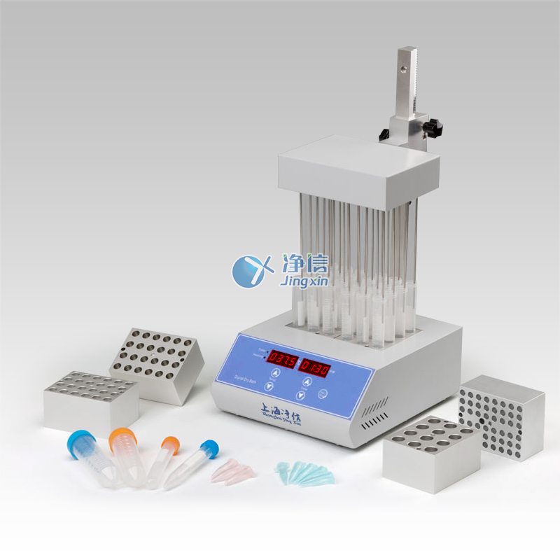 JXDC-10氮?dú)獯祾邇x采用微電腦和PID模糊控制技術(shù),利用高純度鋁材料做為導(dǎo)熱介質(zhì),以代替?zhèn)鹘y(tǒng)的水浴裝置,具有使用方便、控溫范圍大、精度高等特點(diǎn)。其工作原理是將氮?dú)饣蚩諝饪焖佟⑦B續(xù)、可控地吹到加熱樣品表面,并根據(jù)被濃縮溶劑的蒸發(fā)速度和沸點(diǎn),設(shè)定加熱溫度,實(shí)現(xiàn)大量樣品的快速濃縮。