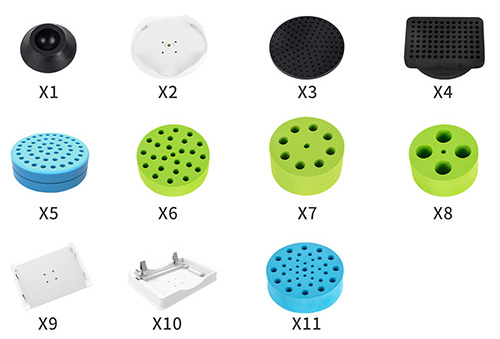 X11 | 泡沫模塊,與標配托盤連用,用于放置1.5/2.0/0.5/0.2ml試管,Φ9.8mm×12個,Φ6.6mm×12個,Φ5mm×12個 | |